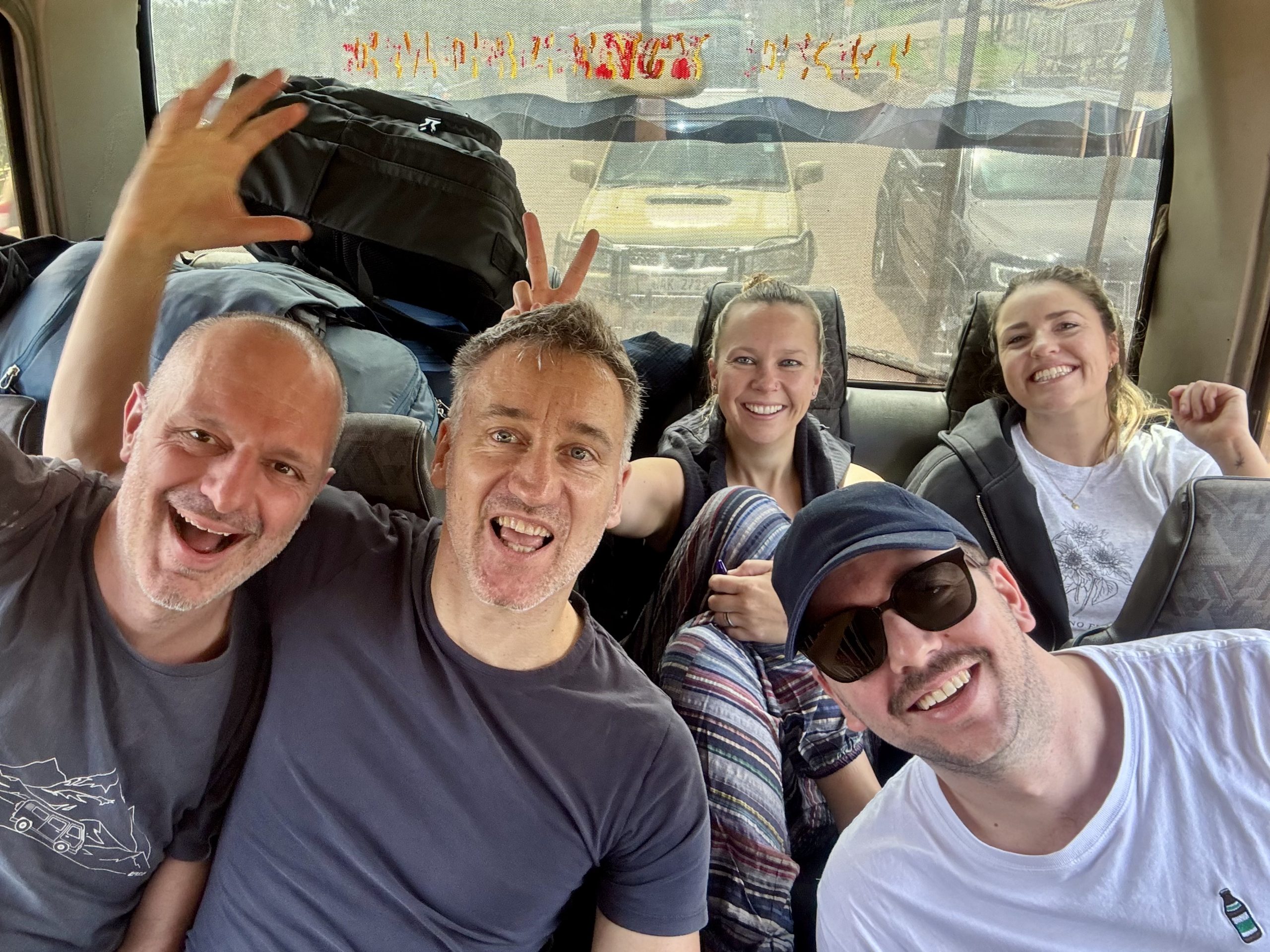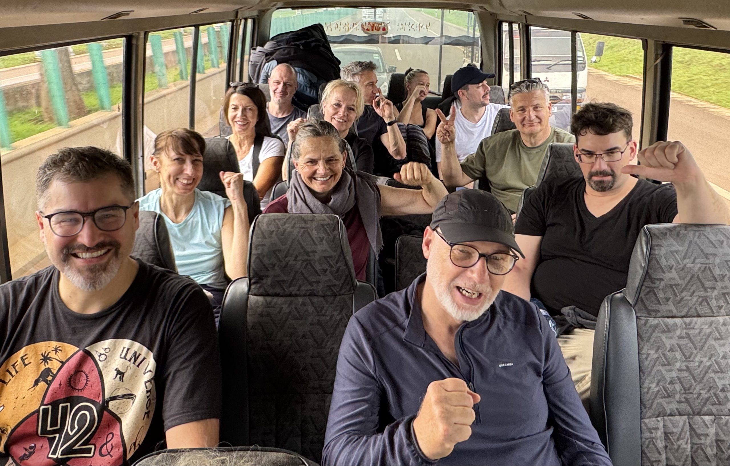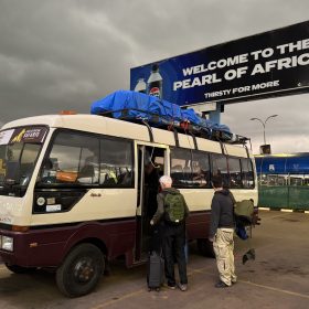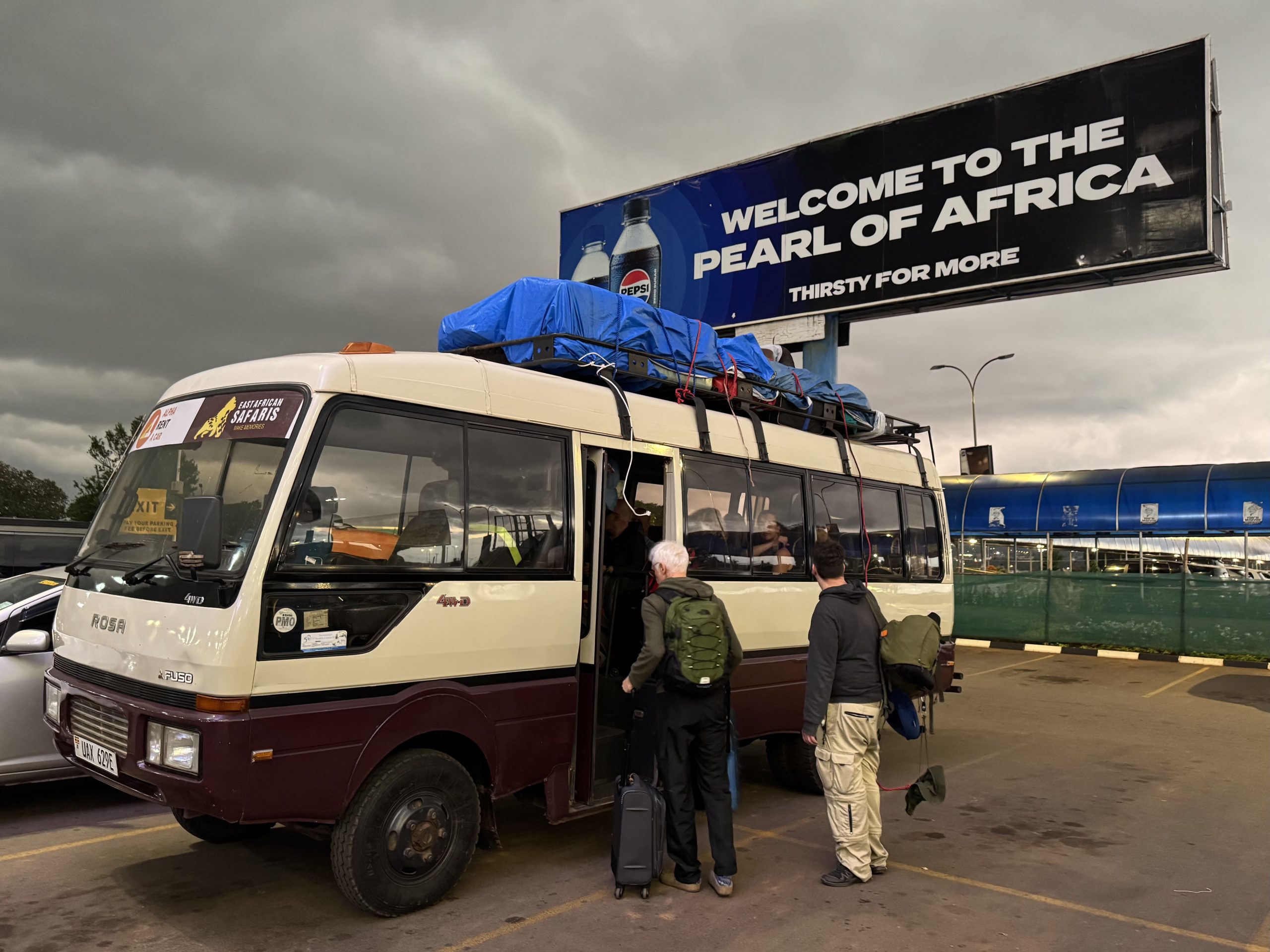 Der Rest lief wie am Schnürchen. Im Lost-&-Found-Office wurden die fehlenden Gepäckstücke schnell im System erfasst, und auch die Einfuhr der angemeldeten Materialien ließ sich problemlos mit dem Inspektor der NDA klären. Kurz darauf saßen wir bereits im beladenen Bus und erreichten zügig unser Hotel in Entebbe – ein kurzer Zwischenstopp zum Ankommen, Durchatmen und Energietanken.