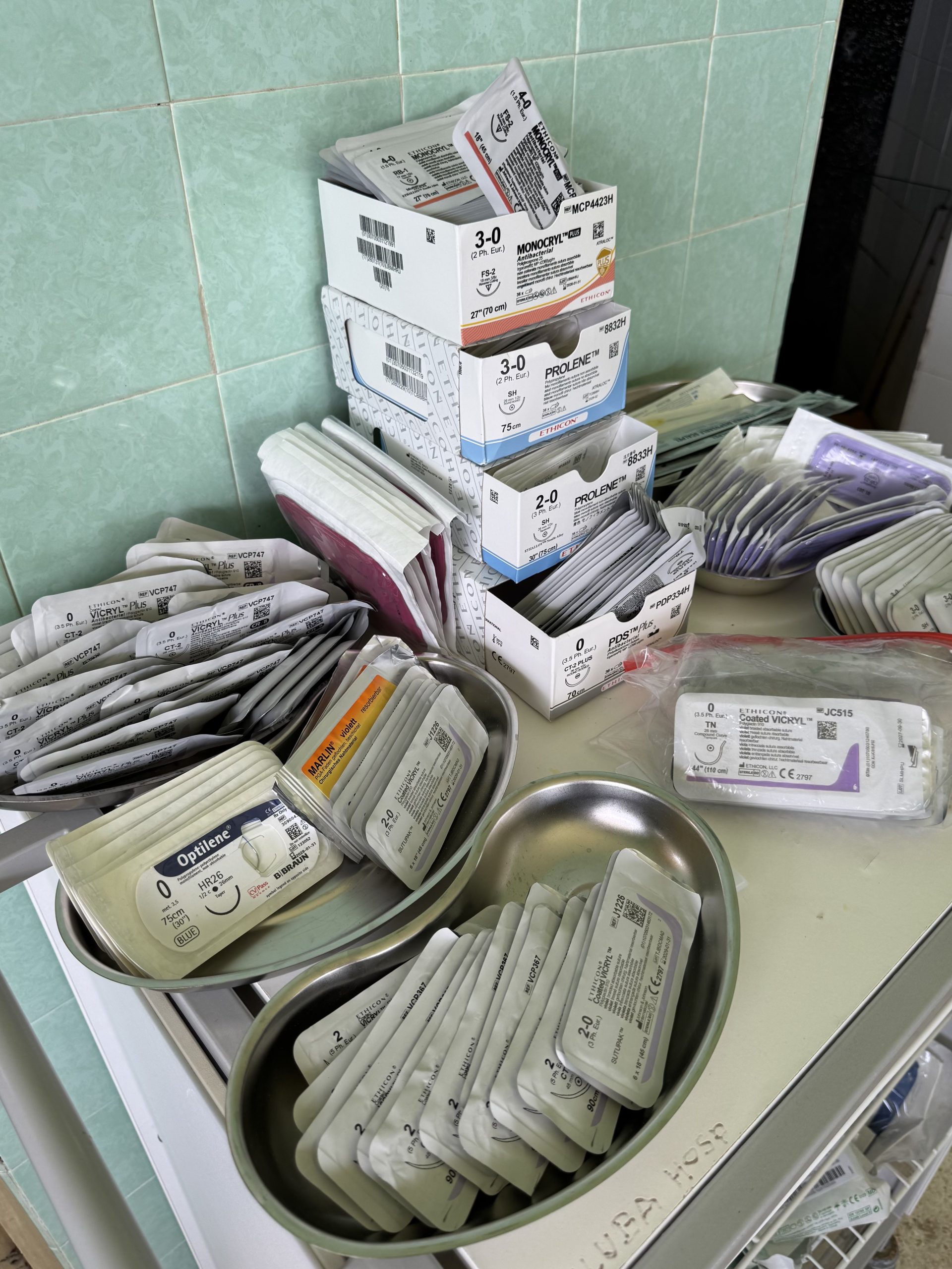 Koffer wurden ausgepackt, Materialien gesichtet und sortiert, Instrumentensets sterilisiert, Überwachungsplätze an den OP-Tischen eingerichtet, das Narkosegerät und Medikamente gecheckt, Nahtmaterial vorbereitet und die Diathermiegeräte angeschlossen. Was früher deutlich mehr Zeit in Anspruch nahm, lief dank der über die Jahre gewachsenen Routine inzwischen reibungslos – perfekt aufeinander eingespielt. Innerhalb weniger Stunden war alles einsatzbereit.